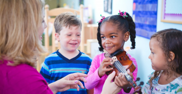 The listening activities strengthen her ability to discern a variety of instruments and musical concepts. Your child will learn to identify a range of orchestra instruments and their sound qualities, while also gaining an early awareness and knowledge of composers and masterworks in Western arts tradition.